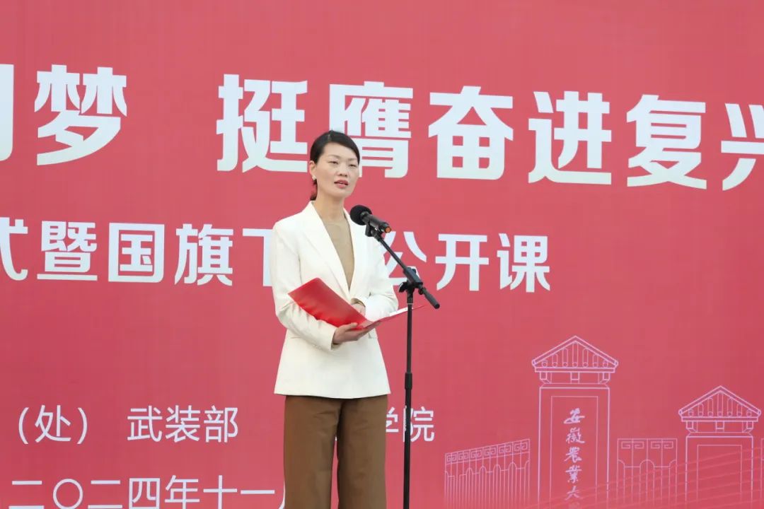 赵冠艳在国旗下开展了一堂“强国建设与中国梦”的主题公开课。她指出,以中国式现代化全面推进强国建设、民族复兴是新时代的中心任务,农科学子应牢记使命,积极投身农业科技创新,以实际行动助力国家发展;希望同学们能够以坚定的信念、扎实的行动,在园艺领域深耕细作,为实现中华民族伟大复兴的中国梦贡献自己的智慧与力量,让青春在服务三农的伟大事业中绽放绚丽之花。