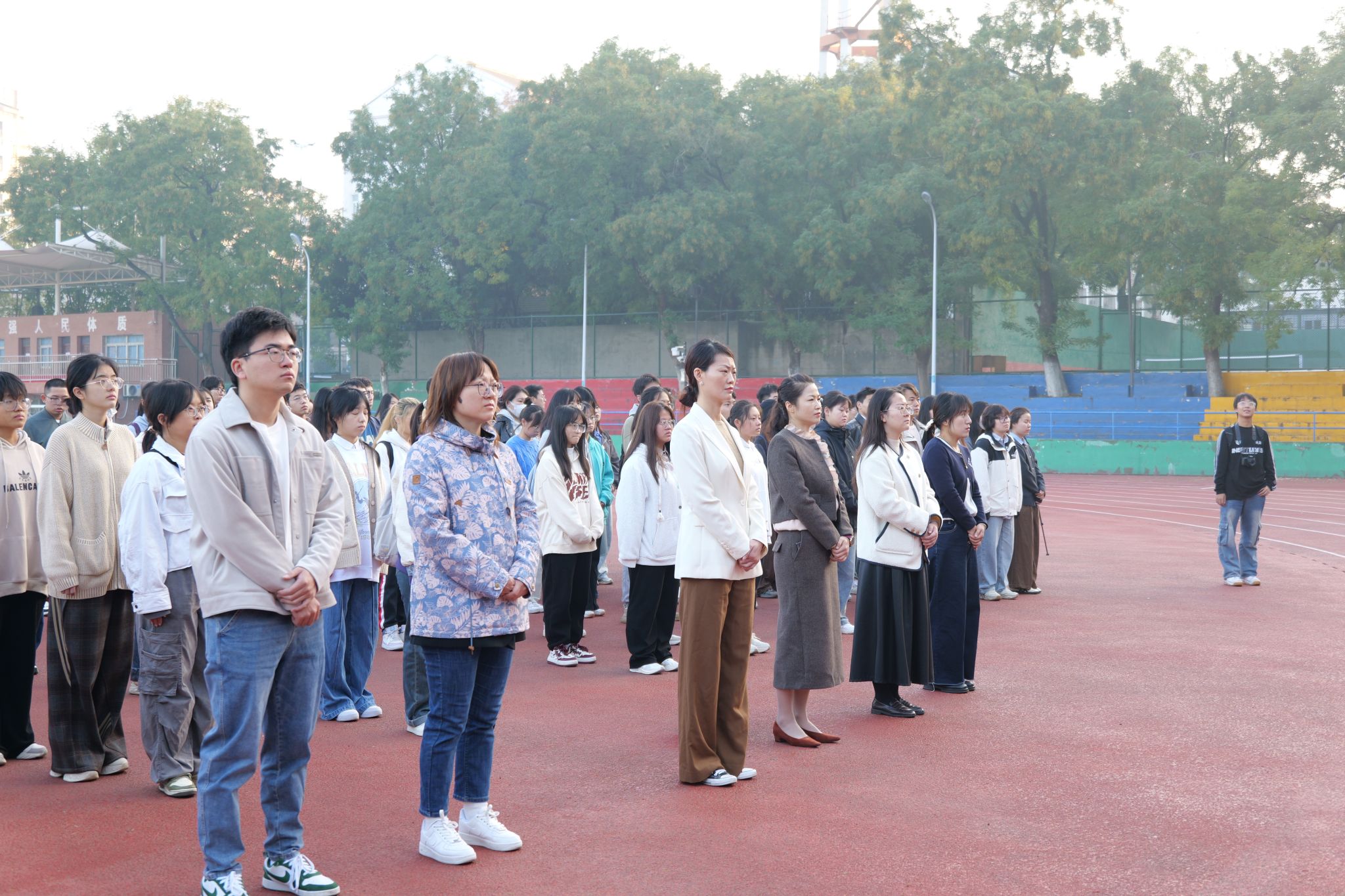 本网讯 11月11日清晨,园艺学院在第一运动场举办“同心共铸强国梦 挺膺奋进复兴路”升旗仪式暨国旗下的公开课。校党委学生工作部、党委武装部、学生处部长、处长任琪,园艺学院党委书记赵冠艳、党政领导班子成员、专职辅导员以及2024级全体本科生、研究生参加活动,升旗仪式由园艺学院党委副书记叶辉主持。
