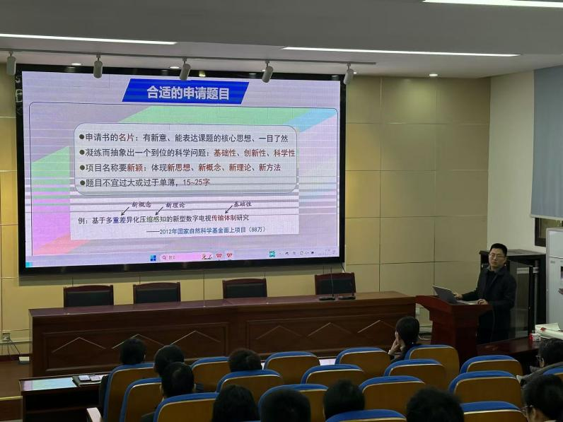 会上,吴双教授简要介绍了近年来国家自然科学基金项目申报和获批情况,结合自身申报基金经历,以往年获批的优秀申报书为案例,从选题、立项依据、研究目标、研究内容、项目创新型等方面分享了申报书撰写要点,全方位的解析了如何撰写高质量基金项目申请书。