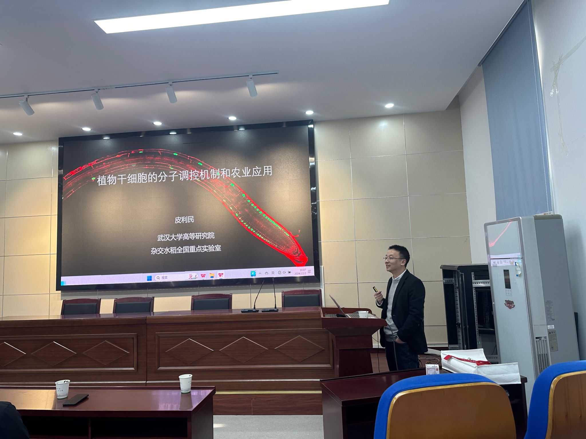 皮利民研究员作了专题为“植物干细胞的分子调控机制和农业应用”的精彩学术报告。报告围绕解析植物干细胞维持以及衰老的调控机制展开,植物干细胞机制的研究对调控植物的生长发育、提高农作物的抗逆性和改良植物育种具有重要意义。会后,他就可进一步研究的问题与学院师生进行了深入探讨。
