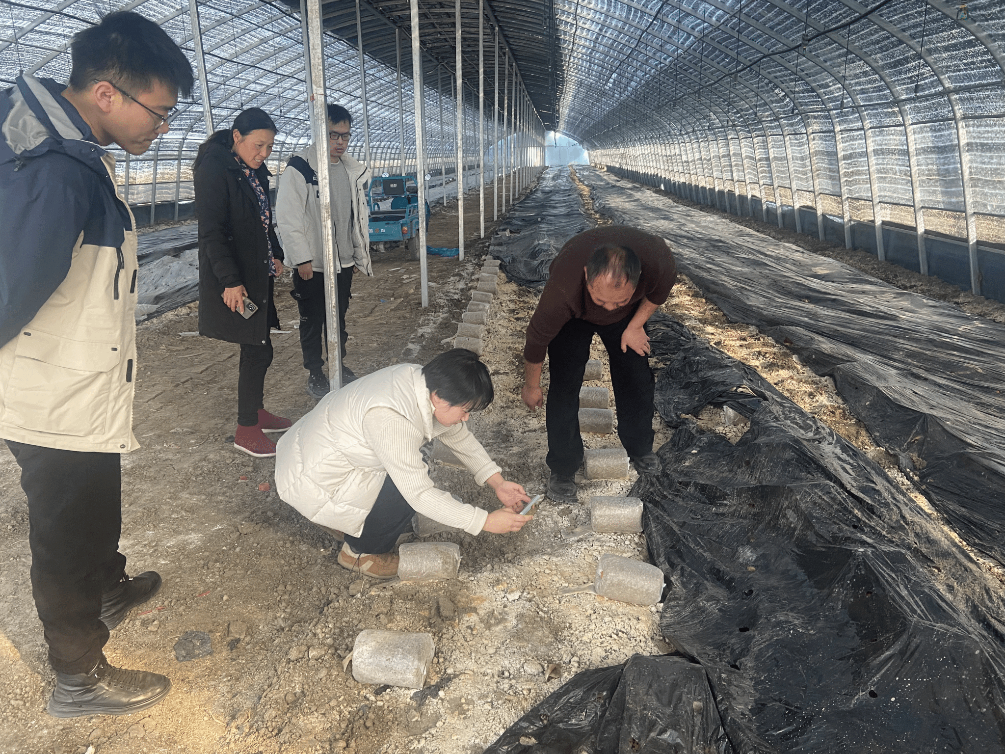 在蔬菜大棚和食用菌生产基地里,张文强一家正开展羊肚菌、金耳、秀珍菇和平菇等食用菌品种栽培试验工作,蔬菜科学系郝艳佳老师结合皖北地区气候特点和农业设施情况,从菌种选择、菌棒制作、菌丝培养和出菇管理等提出了良好的技术措施。调研过程中院企双方就人才培养需求、校企合作模式、专业技术支持等方面进行了充分探讨。