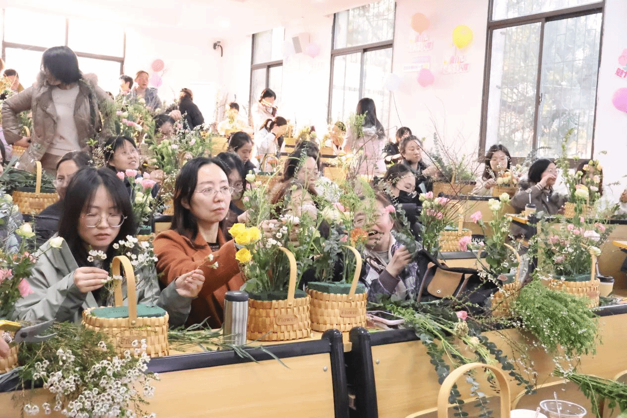 巧手凝芬芳 匠心寄花语。我院女教工王华老师与大家一道现场共同制作《“会呼吸”的国风花篮》,并从花材选择、色彩搭配、意境塑造等方面深入浅出地讲解插花艺术精髓。女教职工们巧手翻飞,将玫瑰、康乃馨等花材精心雕琢,创作出各具特色的花艺作品。一篮篮错落有致的插花,既展现了园艺学科的专业魅力,也寄托了女性对美好生活的诗意追求。