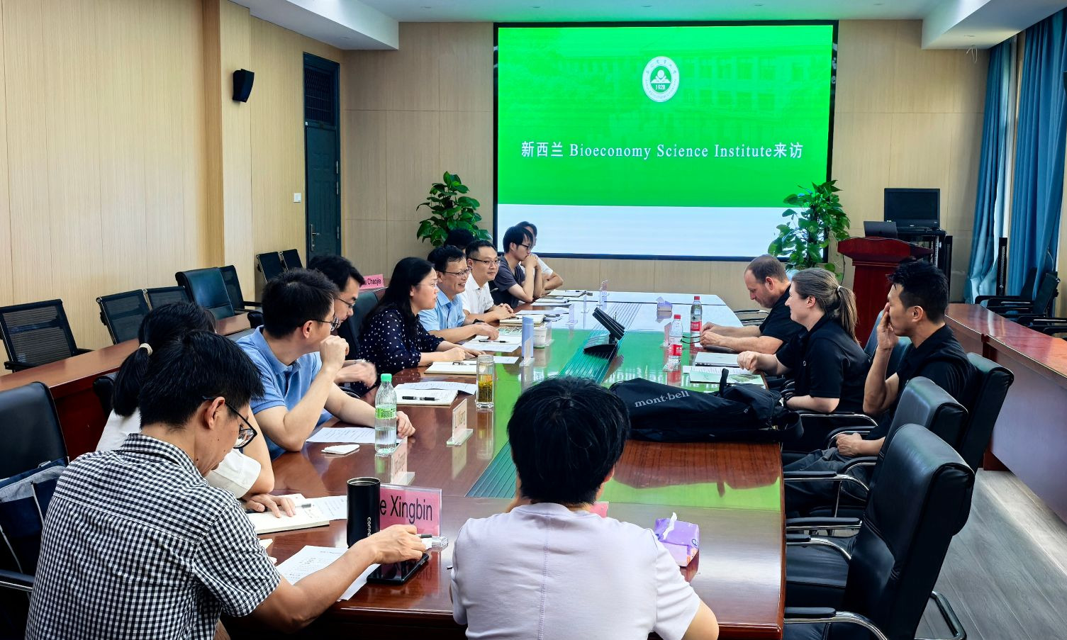 本网讯 8月18日,新西兰生物产业科学院(New Zealand Bioeconomy Science Institute,以下简称BSI,原新西兰皇家植物与食品研究院)大中华区经理Liverpool Zhang(张欢宁)、Kiwifruit New Cultivars团队负责人Sarah Pilkington,猕猴桃育种中心(Kiwifruit Breeding Center,以下简称KBC)首席运营官Bart Challis一行到访学院,开展交流座谈。校国际合作处处长李大祥,学院领导班子及部分教师代表参加会议。会议由学院副院长刘普主持。