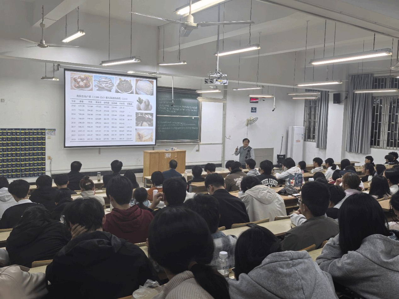 汪承刚教授从“一粒种子改变世界”的故事出发,以《蔬菜种业现状与未来》为题,结合自身科研团队立足田间地头,服务蔬菜种业发展的亲身实践,向同学们讲述了蔬菜产业发展的现状和取得的重大成就,深刻阐述了蔬菜种业“卡脖子”的瓶颈问题,勉励同学们要树立责任意识,扎实学好园艺专业知识与本领,为打好种业翻身仗做好充分准备。