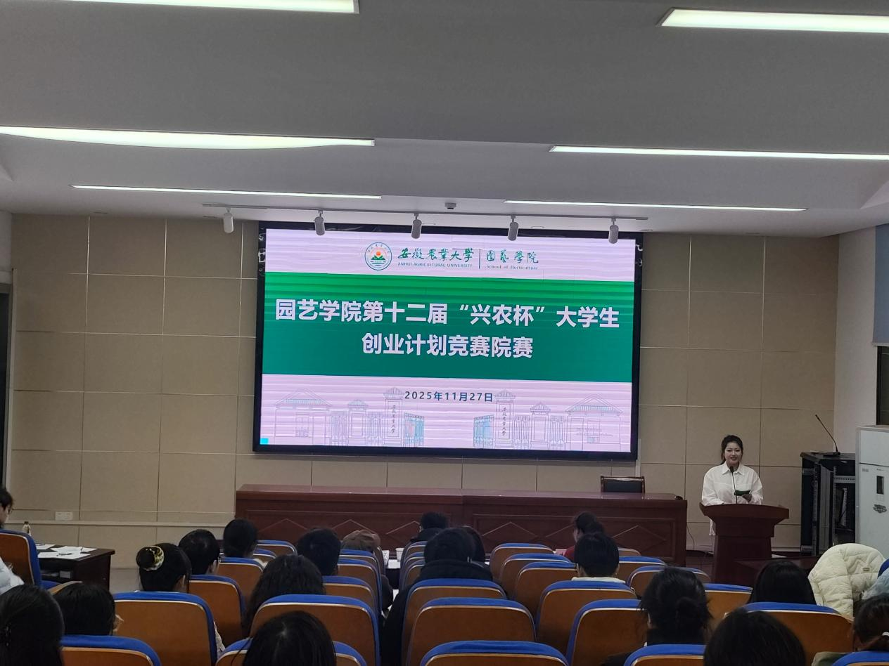 本网讯  为激发学生创新创业热情,提升服务乡村振兴能力,11月27日晚,园艺学院在二教245江淮园艺学术报告厅举办第十二届“兴农杯”大学生创业计划竞赛院级选拔赛。比赛邀请学校创新创业国奖指导老师担任评委,学院专职辅导员、指导教师及24、25级学生代表现场观摩比赛。