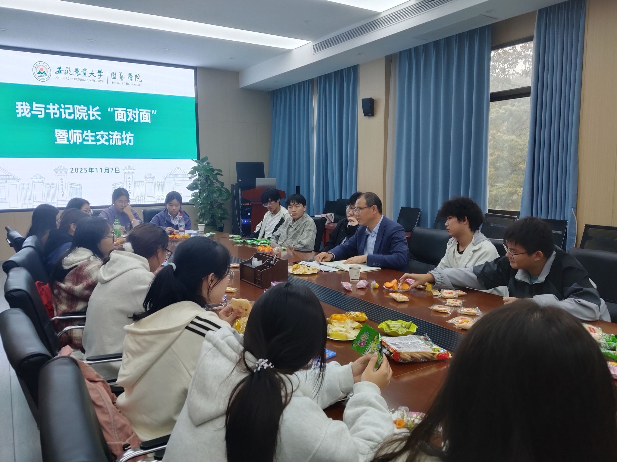 本网讯  10月下旬至11月中旬,第十一期我与书记院长“面对面”暨师生交流坊系列活动顺利开展,交流坊面向全体2025级园艺专业本科生开展“小班级”式座谈交流,院长吴俊,学院党委副书记程玉峰、叶辉,副院长殷学仁、袁凌云、刘普等党政领导深入班级畅谈园艺专业人才培养,解答学生困惑。