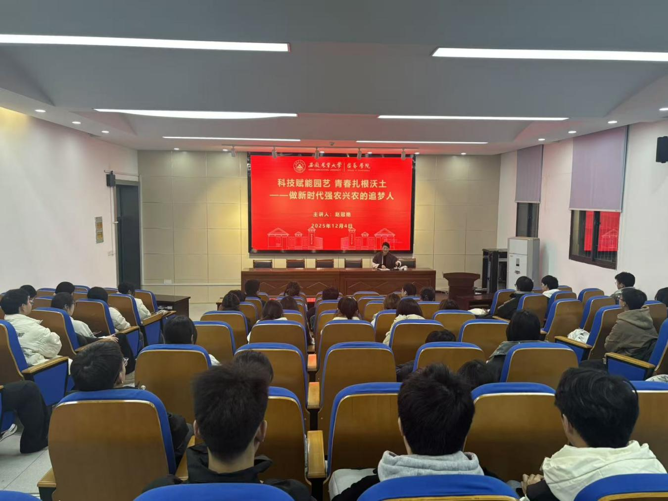 本网讯 12月4日晚,校科技处处长赵冠艳受邀为园艺学院2024级本科生讲授思政课。