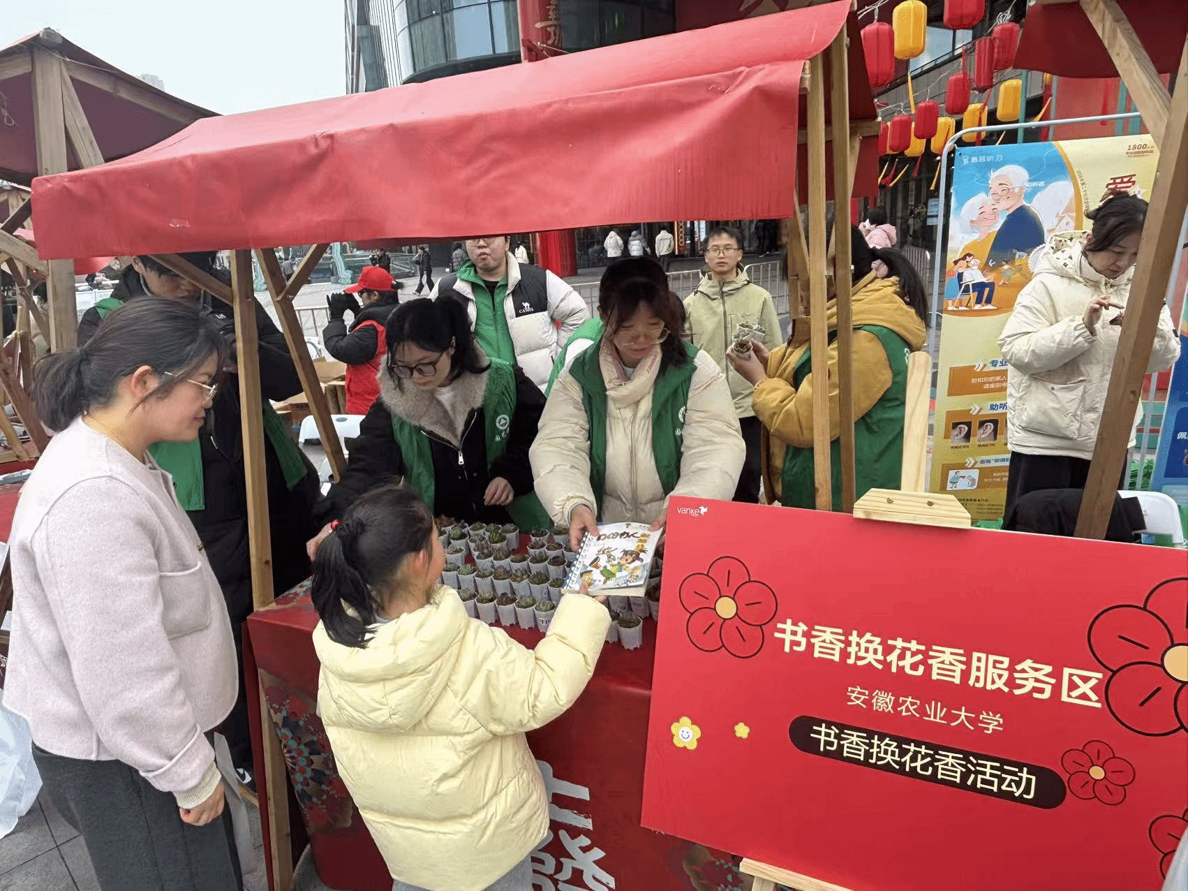 本网讯 3月3日下午,园艺学院2024级果树2班团支部携手庐阳区大杨镇雁栖社区与合肥小红帽社会公益中心,共同举办“学雷锋、做志愿,担当作为践初心”主题活动。活动延续“以书香换花香”这一深受喜爱的品牌主题,鼓励居民用闲置书籍兑换多肉植物,吸引近百名社区居民热情参与,现场置换书籍200余本,取得了良好的社会反响。