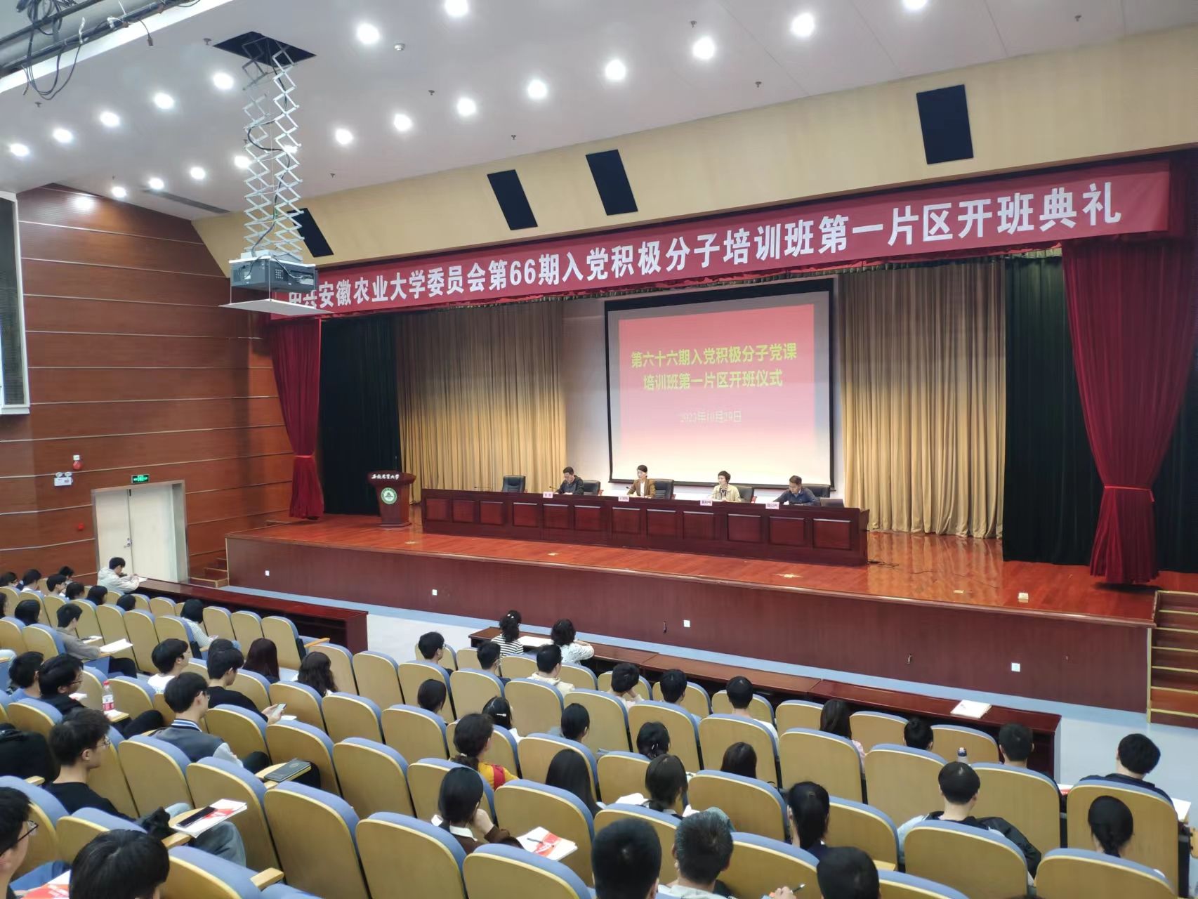 开班仪式上,夏利明介绍了第66期大学生入党积极分子党校培训班第一片区授课安排,强调了培训班的课堂纪律、学习要求和注意事项,希望广大学员从思想和行动上不断向党组织靠拢。张璐做了动员讲话,宣布了第66期入党积极分子党课培训班第一片区班委会名单,希望全体学员要进一步明确入党动机,严格要求自己,争取早日加入中国共产党。2022级园艺专业杨雨强作了学员代表发言,向老师及同学表达了作为入党积极分子的自豪感,郑重承诺将认真学习党的基本理论知识,努力学习、奋发向上,争取早日加入中国共产党表达了坚定的入党决心。
