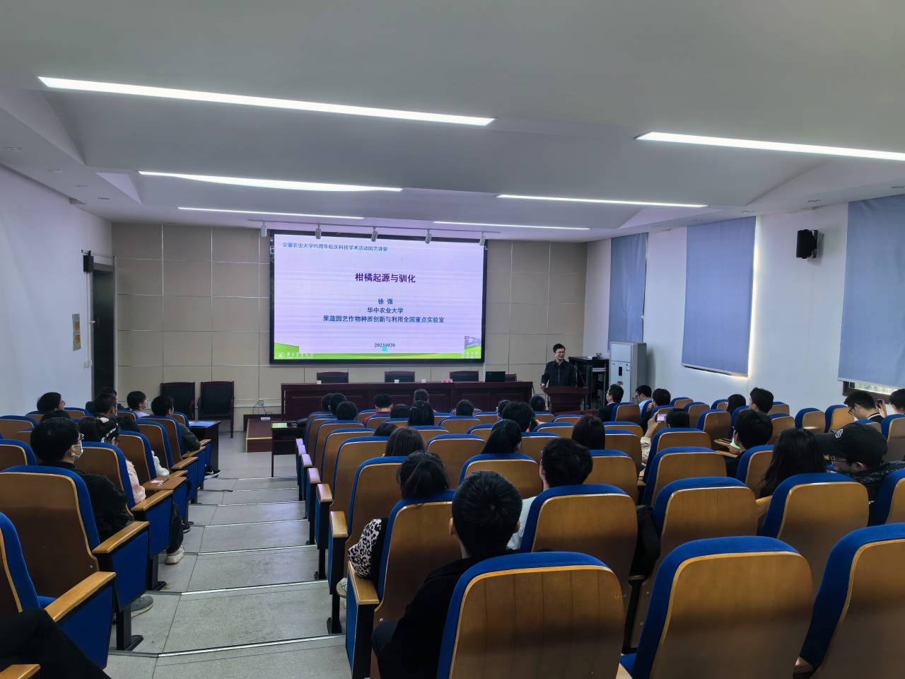 报告中,徐强教授以柑橘的起源和进化以及果实柠檬酸的驯化为主题,深入浅出地讲解了不同种类柑橘的起源传播历程,系统梳理了柑橘属的分类,并解析了影响柑橘柠檬酸含量的相关基因及其在进化历史中受到的驯化选择。随后,徐强教授进一步介绍了其团队搭建的柑橘基因组平台及在柑橘育种中的作用,并对基因组在分子育种中的应用进行了展望。报告过程生动有趣,内容丰富,引起了在场师生的强烈兴趣。