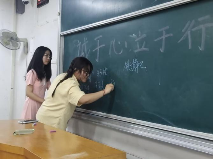 宣誓承诺以表决心。5月29日晚,学院在勤学楼425教室组织76名低年级学生举行了“我诚信·我承诺”宣誓和诚信签名活动,通过自我签名宣誓激发学生励志感恩情怀,自觉践行诚信行为。