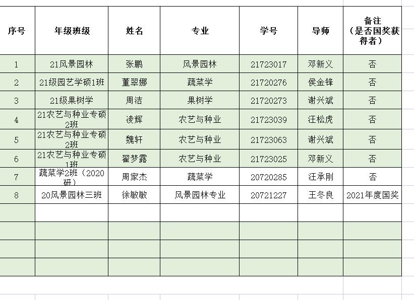 园艺学院2022年度“优秀研究生”、“优秀研究生干部” 推荐名单公示