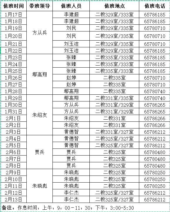 园艺学院2022年寒假值班表