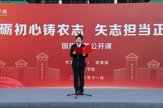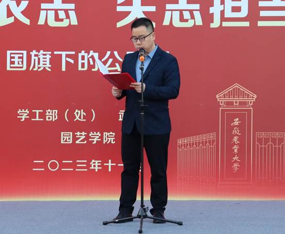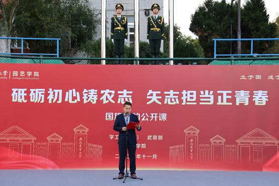为增强学生爱国荣校意识、树立“知农爱农、强农兴农”志向,11月6日清晨,园艺学院在校第一运动场举办“砥砺初心铸农志 矢志担当正青春”国旗下的主题公开课。校党委武装部副部长、学工部(处)副处长卢伟、园艺学院副院长朱晓彪教授、教师代表、全体专职辅导员以及2023级全体新生齐聚国旗下参加本次活动。活动由院党委副书记陈公伟主持。