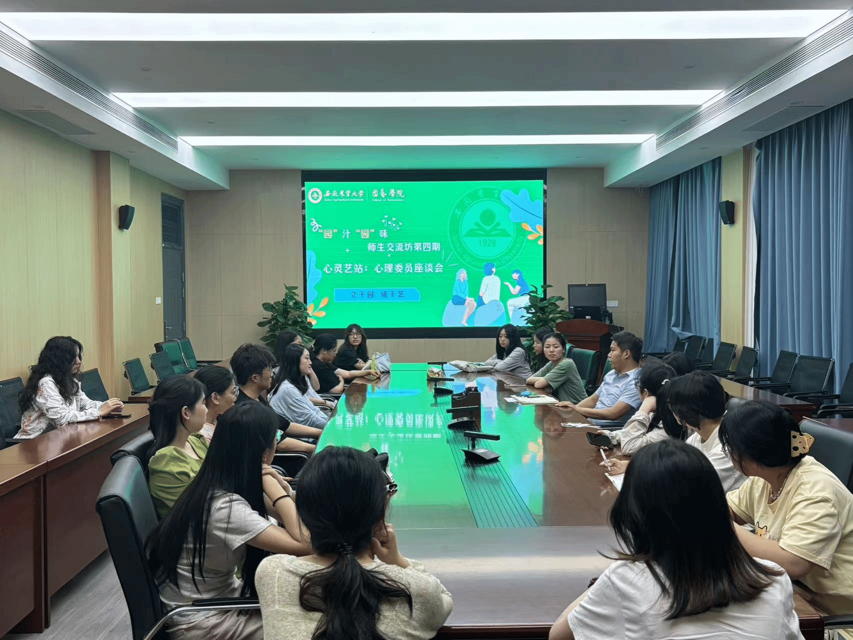 本网讯:为进一步加强园艺学院学生心理健康教育工作,及时了解学生心理健康状况,提升班级心理委员工作能力,5月24日晚,学院在二教326会议室举办第四期“园”汁“园”味师生交流坊—“心灵艺站”活动,与全体心理委员面对面交流座谈。国家二级心理咨询师、人文与社会科学学院徐晓波副教授应邀作报告,本科生和研究生各班级心理委员参加会议。活动由学院党委副书记陈公伟主持。