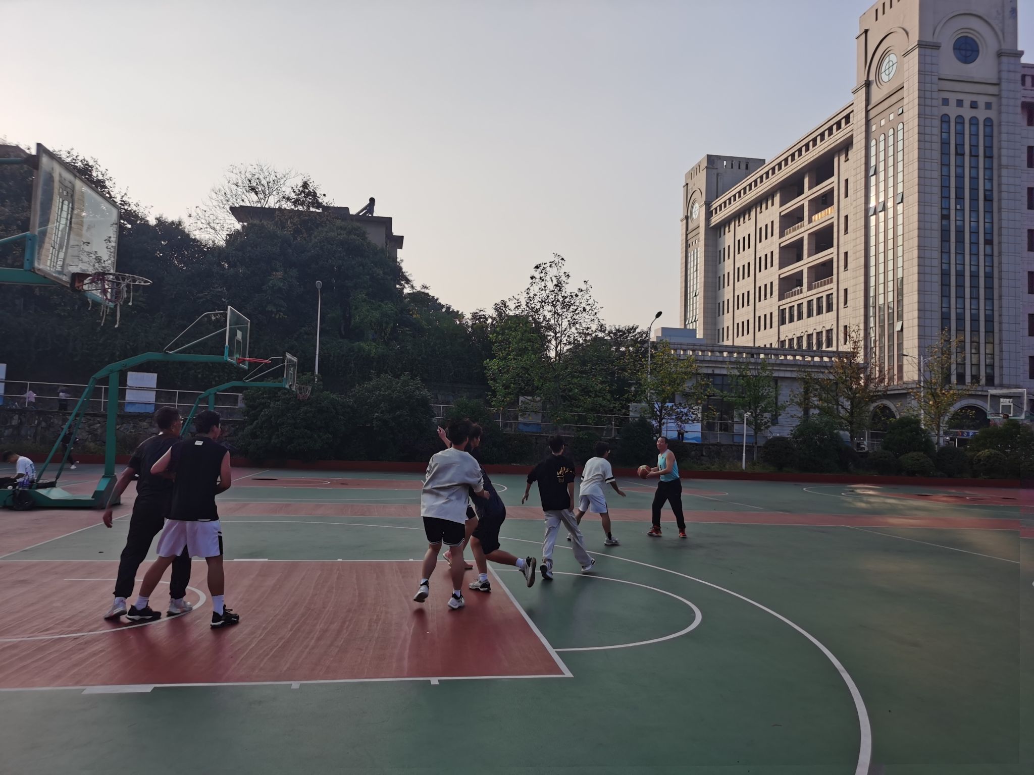赛场上,师生队员们奔跑、传球、投篮,快速突破、犀利进攻,展现出无限活力与朝气。赛后,老师们向同学们分享比赛经验,帮助他们更好配合,增强团队协作意识;大家相互沟通、分享比赛乐趣,充分发扬了友谊第一 比赛第二的运动精神。