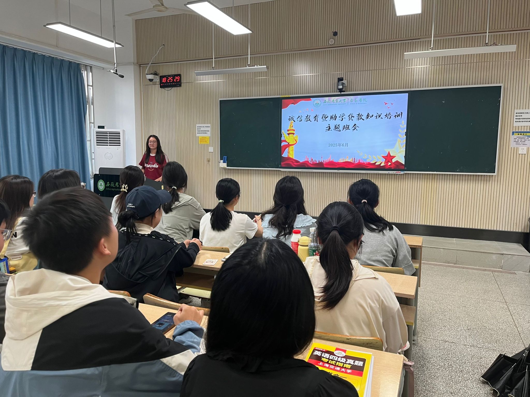 班级同心,诚信为盟。学院全体本科生班级覆盖式开展诚信教育暨贷款知识培训主题班会,共计开展20余场次。通过分享诚信故事、讲解助学贷款等金融意识,引导学生们在金融时代守护诚信,用好专属每个人的诚信“名片”。