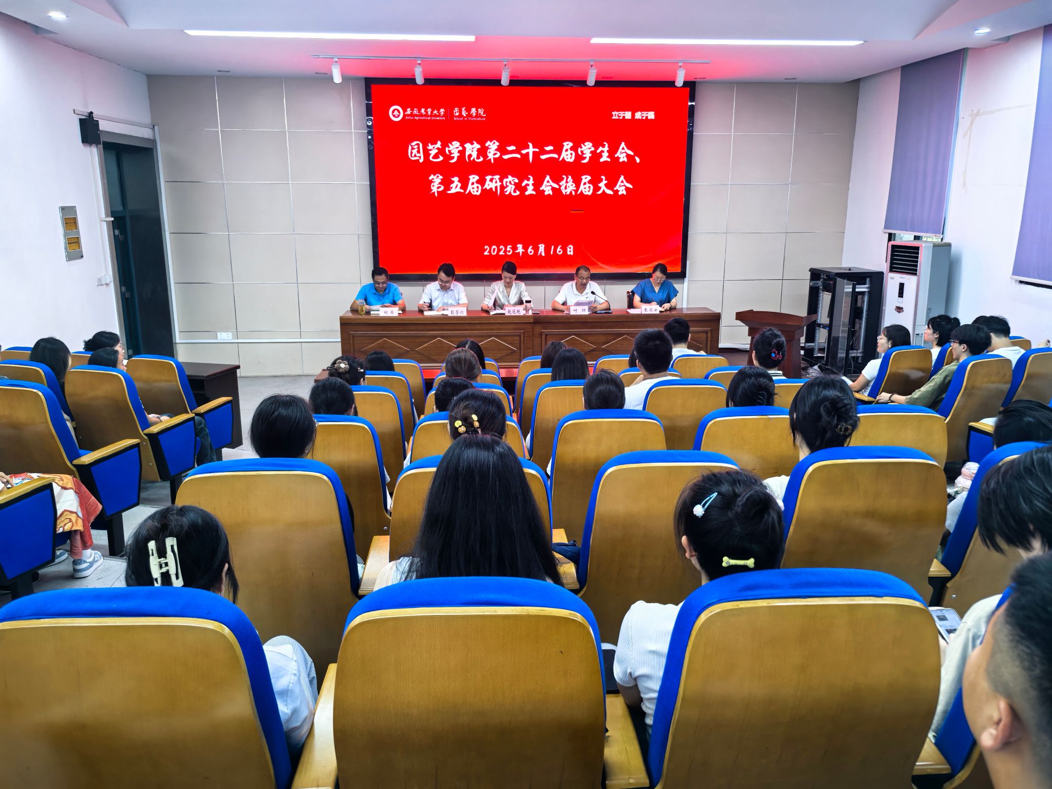本网讯 为加强学生干部队伍建设,促进学生组织工作顺利交接和高效运转,6月16日,学院在江淮园艺报告厅举办第二十二届学生会和第五届研究生会换届大会。院党委书记赵冠艳、党委委员、副院长殷学仁、党委委员、副院长袁凌云、副院长刘普及院党政办公室、学生会、研究生会全体成员参加大会,会议由党委副书记、纪委书记叶辉主持。