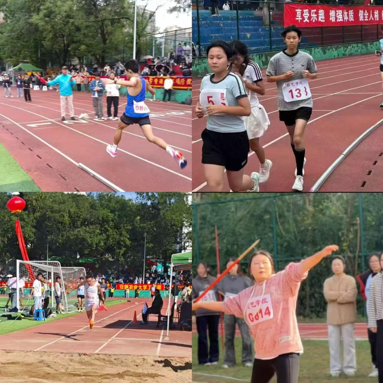 2022级林红旭同学已连续四届校运动会中参加多个单人和集体项目,本届运动会他带领4×100米团队,虽然以0.1秒的成绩无缘前八,但大四学长的坚持与拼搏时刻激励着每一位参赛运动员;2023级胡良意同学和2024级阮新雨同学一对田径赛场的老搭档,代表园艺参加男子10000米比赛,前者勇夺全校第四,后者克服赛前身体不适、上午勇拼800米前八的困难,凭借坚强的意志顺利完成比赛;2025级王岩同学在参加的两个单项里斩获一金一银的骄人成绩,孙贝宁同学连续不间断参加800米和3000米两个中长跑项目,在后一个项目的最后百米发起冲刺,拼入前八;2025级研究生姜延畅分别获得铁饼和铅球比赛第二名,充分展现园艺学子不畏困难、敢于拼搏的精气神......比赛中的每一块奖牌、每一分积分的背后,都凝聚着运动员们日复一日的刻苦训练和赛场上幸福的汗水与顽强的毅力。