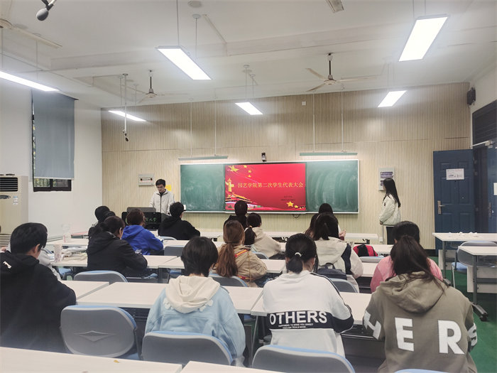 本网讯 11月26日晚,园艺学院在二教201举办了第二次学生代表大会。会议由学生会主席候选人职瑞奇主持,学院党委副书记鄢高翔、团委负责老师张臻出席了本次会议。