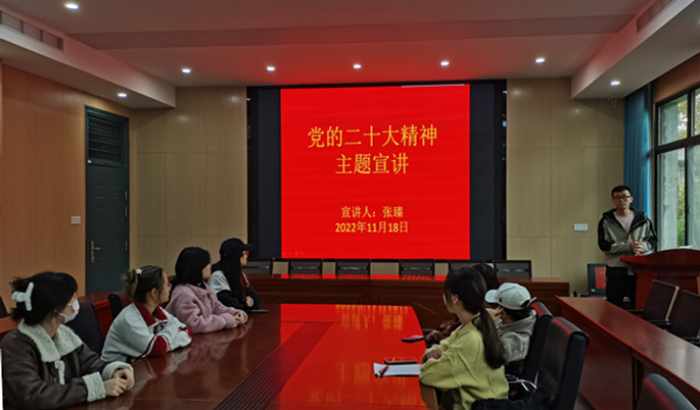 本网讯 11月18日中午,我院团委在326会议室开展党的二十大精神主题宣讲。学院全体团委兼职副书记、团委委员参加了学习,宣讲由团委负责老师张臻主持。