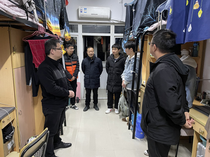 本网讯 在期末考试和考研来临之际,深入了解学生思想动态,加强诚信考试教育,强化学生安全稳定工作,12月23日晚,学院党政领导带领全体辅导员对学生宿舍进行走访检查。