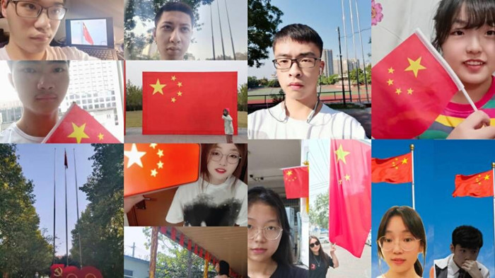 今天,我们与国旗合影。明天,我们为祖国奋斗终身,强国有我,祝愿祖国繁荣昌盛。本次主题班团活动开展,通过与身边国旗的合影使同学们主动去探寻、去思考中国成立至今,其中的困难与不易,培养同学们的爱国主义情怀,争做有理想、有抱负的新时代青年。(20级园艺3班 通讯员:赵婷)