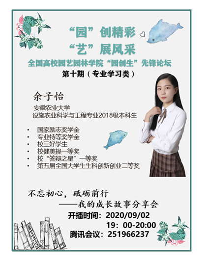 9月2日晚,第十期全国高校园艺园林学院“园创生”先锋论坛(专业学习类)在我校园艺学院举办,论坛以“云”会议的方式开展,来自全国二十多家园艺园林学院的党委副书记及团委老师出席,近350余人校内外学子参与。