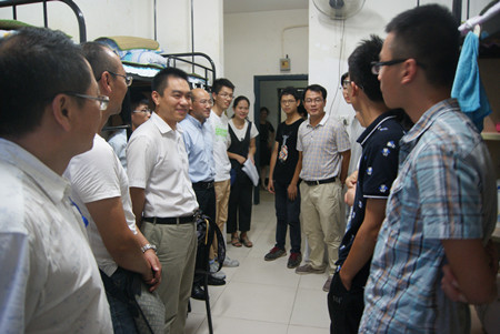 9月3日晚,我院党政领导张令峰、方从兵、裴孝伯、吴永红和新生辅导员一行到学生宿舍看望2016级新生和部分学生家长。