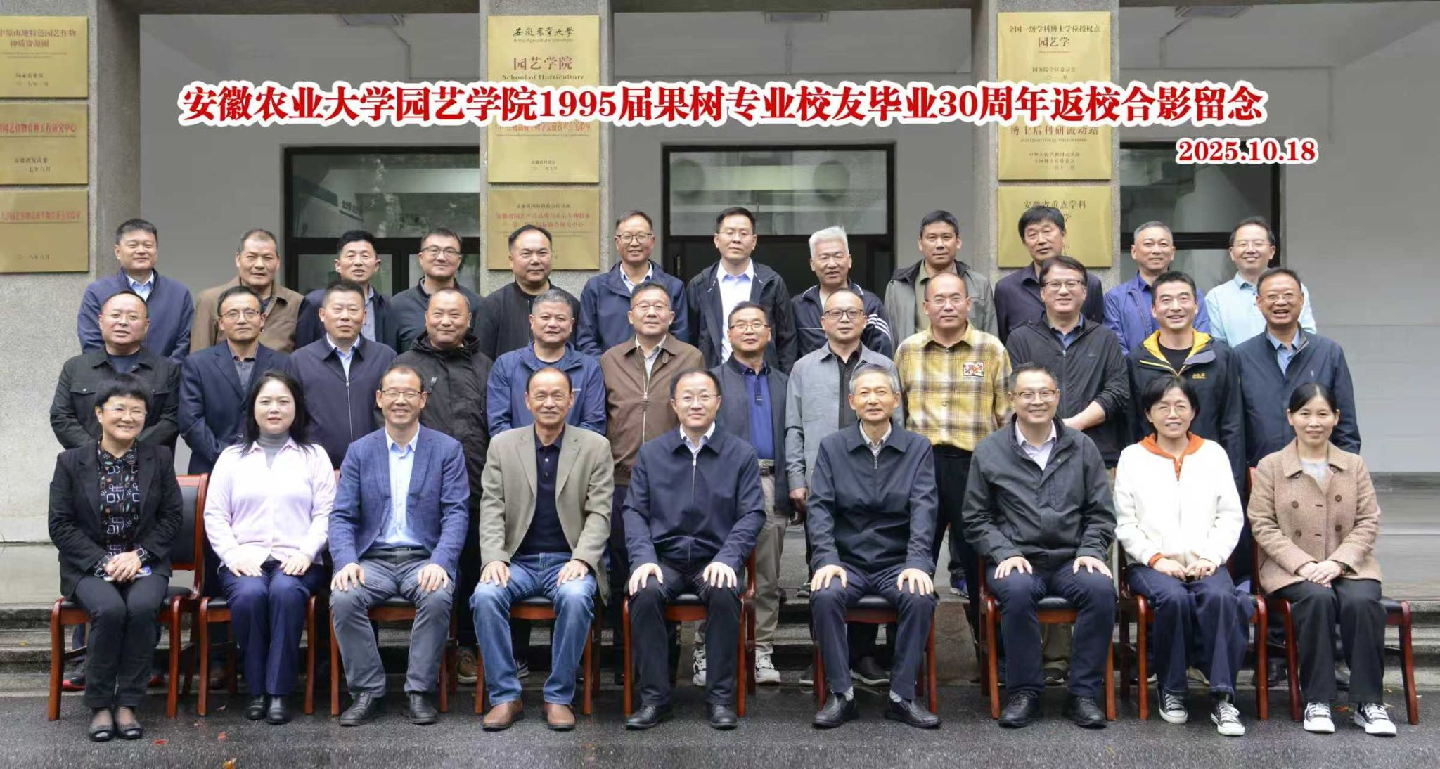 本网讯 10月18-19日,适逢安徽农业大学建校97周年、在肥办学71周年之际,园艺学院1995届果树专业校友毕业30周年回母校团聚。
