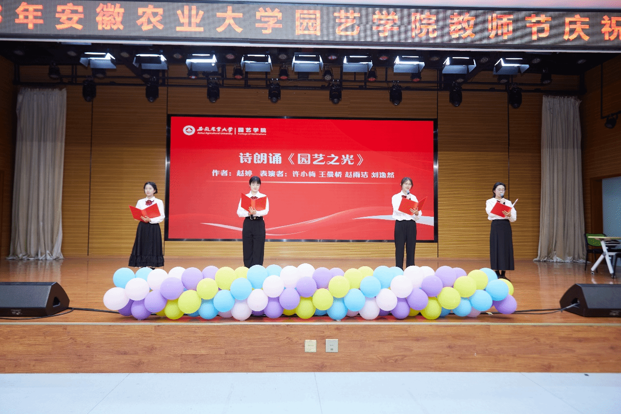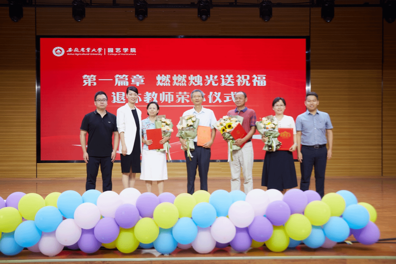 今年学院首次把教职工荣休仪式搬到了教师节庆祝大会的现场。“立于园成于艺”把人才培养的新路开创!敬爱的老师,您是园艺之光!”一首原创诗朗诵《园艺之光》,开启了退休教师荣休仪式和致敬从教30年活动。学院党领导为退休教师杨军、朱立武、孙玉文及从教30年教师徐文娟、朱世东、汪天颁发证书,并由新进教师代表献花。退休教师陶鸿与全体教师漫谈为师之道,鼓励青年教师砥砺奋进、勇于探索。