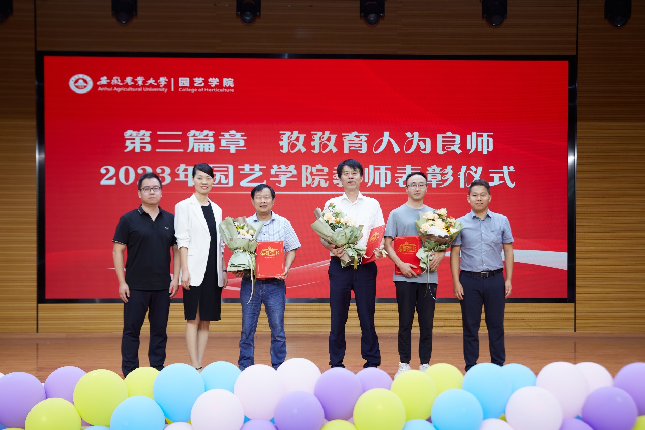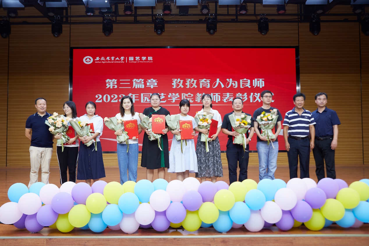 大会为学院工作做出突出贡献的教师代表进行表彰,时任学院领导班子成员朱绍友、武立权、鄢高翔为获奖代表颁发荣誉证书,学生代表献花。“乘风破浪成就智慧园艺,立于园成于艺踏遍江淮大地,就让奋劲融入到,人人心上汇聚园艺大家庭共筑梦想。” 庆祝大会在合唱原创歌曲“加油,园艺人”中落幕。(作者:花荣越 一审:李建超 二审:陈公伟 三审:赵冠艳)